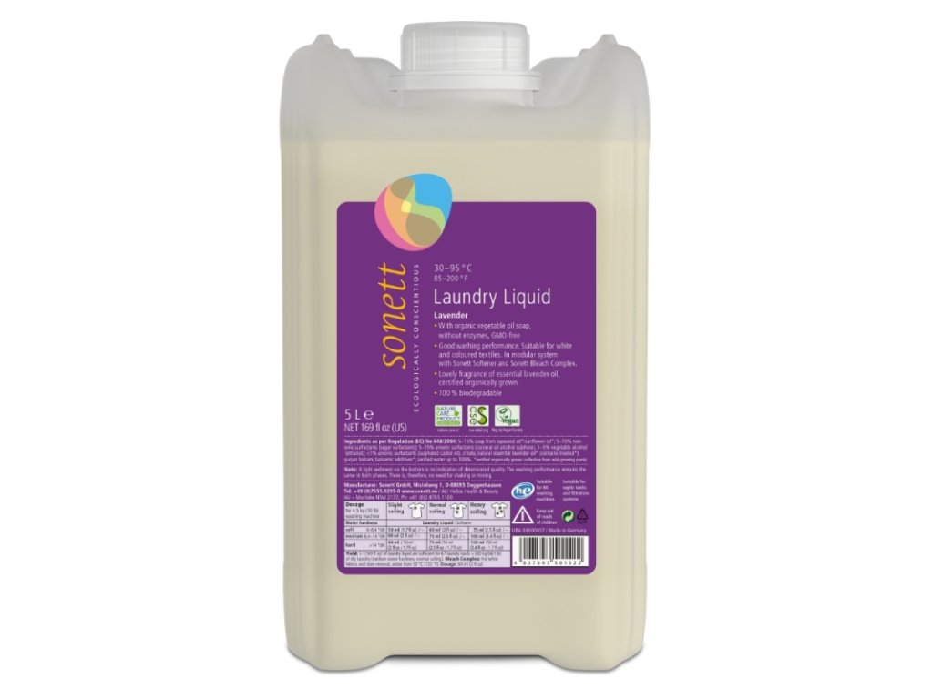 S vůní levandule. Tekutý prostředek určen k praní barevného i bílého prádla z bavlny, lnu, konopí a směsí tkanin při teplotách 30-95 °C.